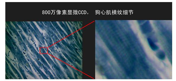 Attached: Tucsen800 megapixel camera CCD details, myocardial cell cross striations clearly visible.