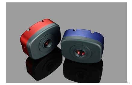 The camera manufacturer can provide a standard adapter for the full platform microscope, since the chip size is 1/1.8 inch, so it is recommended that the 0.5X adapter. The camera is an all aluminum housing, the manufacturer's promotional page provides a red and blue two kinds of shell, provided in our hands is a red shell of the camera.